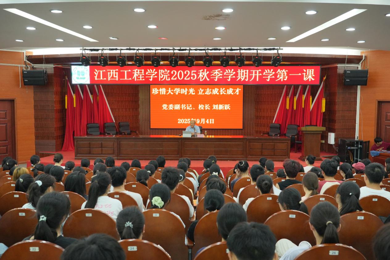 9月4日上午,江西工程学院学术报告厅内,校党委副书记、校长刘新跃以“珍惜大学时光,立志成长成才”为主题,为2025级新生讲授了一堂精彩纷呈的“开学第一课”。刘新跃结合自身经历与时代背景,引导青年学子在历史方位中锚定人生坐标,以匠心为舟、报国为帆,在新时代浪潮中勇毅前行。