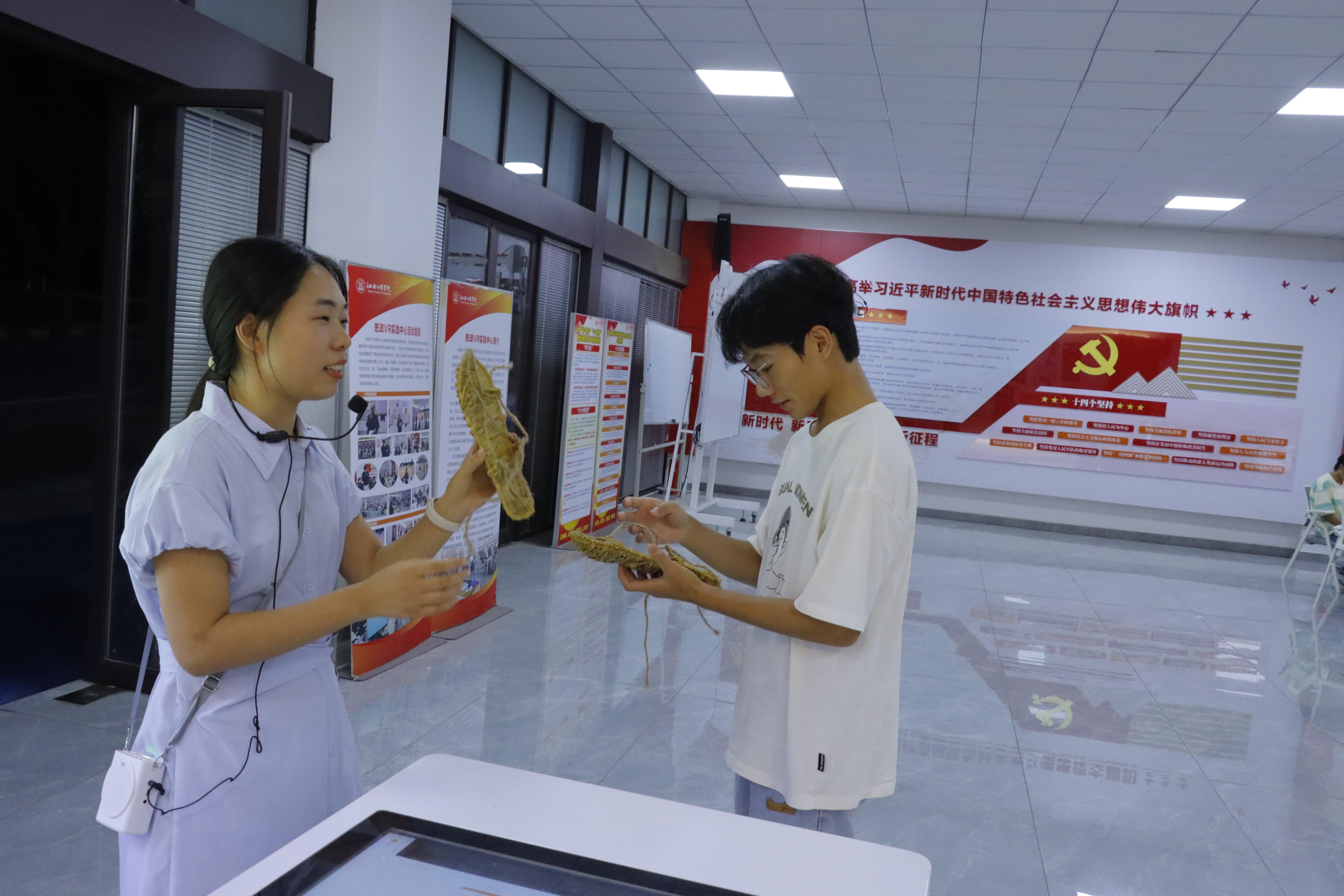 活动中,龚丽还带领学生深入了解龚全珍老人的生平事迹与精神内涵,以及甘祖昌将军“脱军装当农民”这一选择背后蕴藏的精神基因。通过现场与学生共同体验“从‘草鞋痛感’到‘精神力量’”,让学生们更深刻地感受到甘祖昌将军的艰苦奋斗与奉献精神。从“将军待遇”到“月薪300元捐210元”,甘祖昌的奉献精神与当代青年价值观产生强烈共鸣,也让学生们更明确自身的使命与担当。