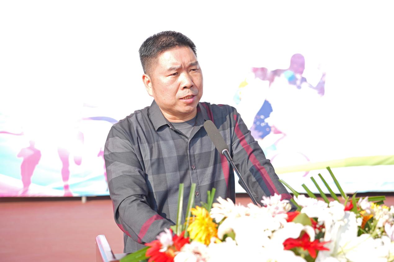 刘新跃代表学校,向本届运动会的顺利举行表示热烈祝贺;向精心筹备本届运动会的师生员工、辛勤执裁的裁判员以及积极参赛的运动员们,致以崇高敬意。他指出,在全国上下深入学习宣传贯彻党的二十届四中全会精神之际,我校迎来了第26届田径运动会。体育是力量的角逐,是智慧的较量,更是精神的彰显。作为促进人的全面发展的重要手段,体育对于健全健康人格、塑造美好心灵、涵养个人修养以及陶冶高尚情操具有不可替代的重要作用。