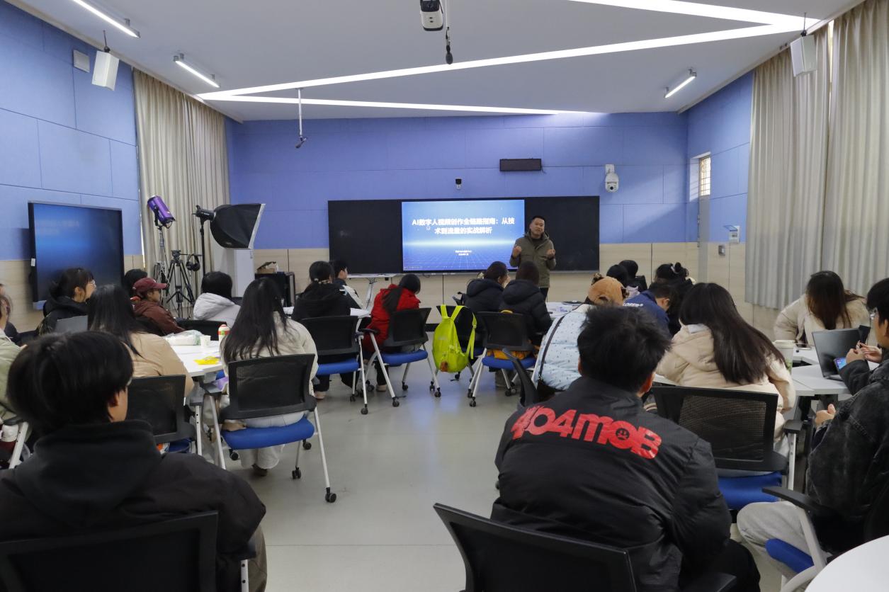 其间,授课团队重点解析了全球数字人产业发展的八大核心驱动力,包括市场规模增长、大模型融合、制作成本降低、应用场景拓展等关键趋势,深入阐释了大模型如何推动数字人在逼真度、交互性与可及性上的技术突破,并通过“虚拟形象‘AYAYI’单篇笔记破300万阅读”“微信视频号数字人内容发展空间”等典型案例,让学生直观感受AI技术对内容生产的重塑力量。