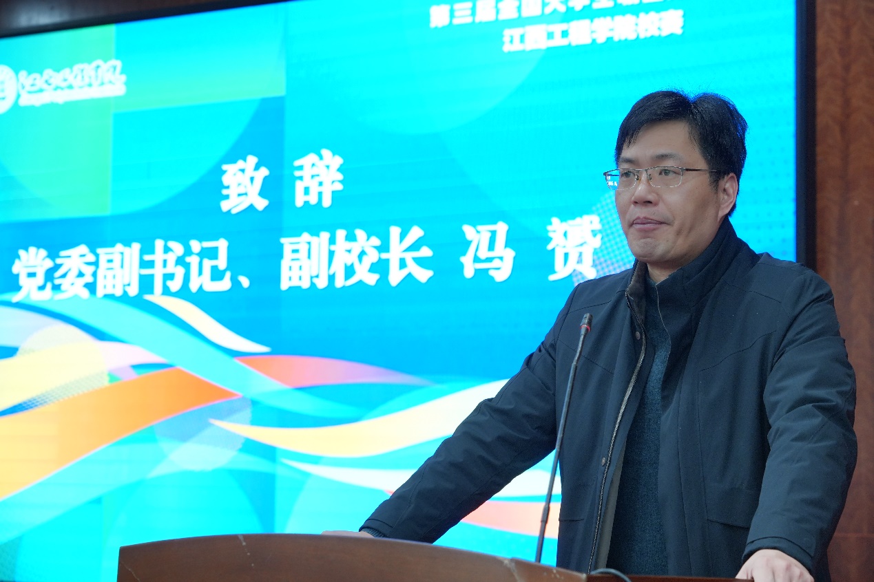 为强化高校生涯教育和就业指导,增强大学生职业规划意识,指导其通过学习实践提升综合素质和能力,及早做好就业准备,以择业新观念打开就业新天地,促进高质量充分就业。1月7日,第三届全国大学生职业规划大赛校赛在江西工程学院天工校区一楼学术报告厅隆重举行。党委副书记、副校长冯赟出席大赛并致辞。大赛评委,辅导员代表、学生代表共200余人现场观看比赛,共同见证学子们的职业梦想与规划风采。