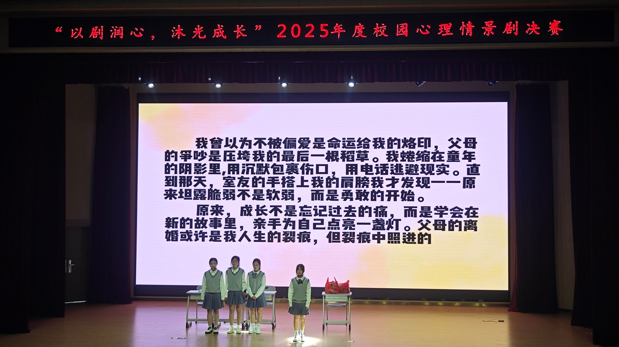心理情景剧大赛作为学校心理健康教育创新实践的重要载体,以沉浸式互动体验打破传统宣教壁垒,为学生搭建起心灵对话的立体舞台。后续,学校将以 "5・25" 心理健康教育宣传活动月为契机,整合力量资源,开展素质拓展、光影疗愈、专业赋能等活动,不断丰富心理健康教育的形式与内涵,推动学校心理健康教育工作向专业化、系统化方向迈进,为学生的健康成长和全面发展构筑稳固的心理防线。