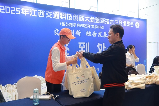为加速江西现代化综合交通体系构建,推动新技术、新产品在赣鄱大地落地应用,进一步点燃交通行业工作者的科技创新热情,由江西省公路学会主办的2025年江西交通科技创新大会暨新技术产品博览会,于10月29日至31日在南昌国际博览城绿地铂瑞酒店隆重启幕。本次大会以“交通创新,融合发展”为核心主题,汇聚院士专家、政企代表、科研人员等行业精英,搭建起全方位、深层次的交通科技创新与产业融合对接平台。在此盛会中,“先锋路桥”志愿服务队积极响应号召,组建志愿力量深度参与大会服务,以青春行动践行志愿精神,为大会顺利开展注入温暖动能。