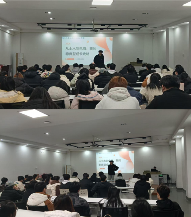 谢金荣以自身从土木专业跨向电商行业为例,鼓励同学们提前规划职业道路,通过实习、竞赛等方式积累经验并积攒人脉。他强调,跨专业求职并非“从零开始”,而是整合资源、持续成长的过程。建议同学们利用课余时间学习目标行业的知识技能,构建个人核心竞争力,为未来职业发展奠定基础。