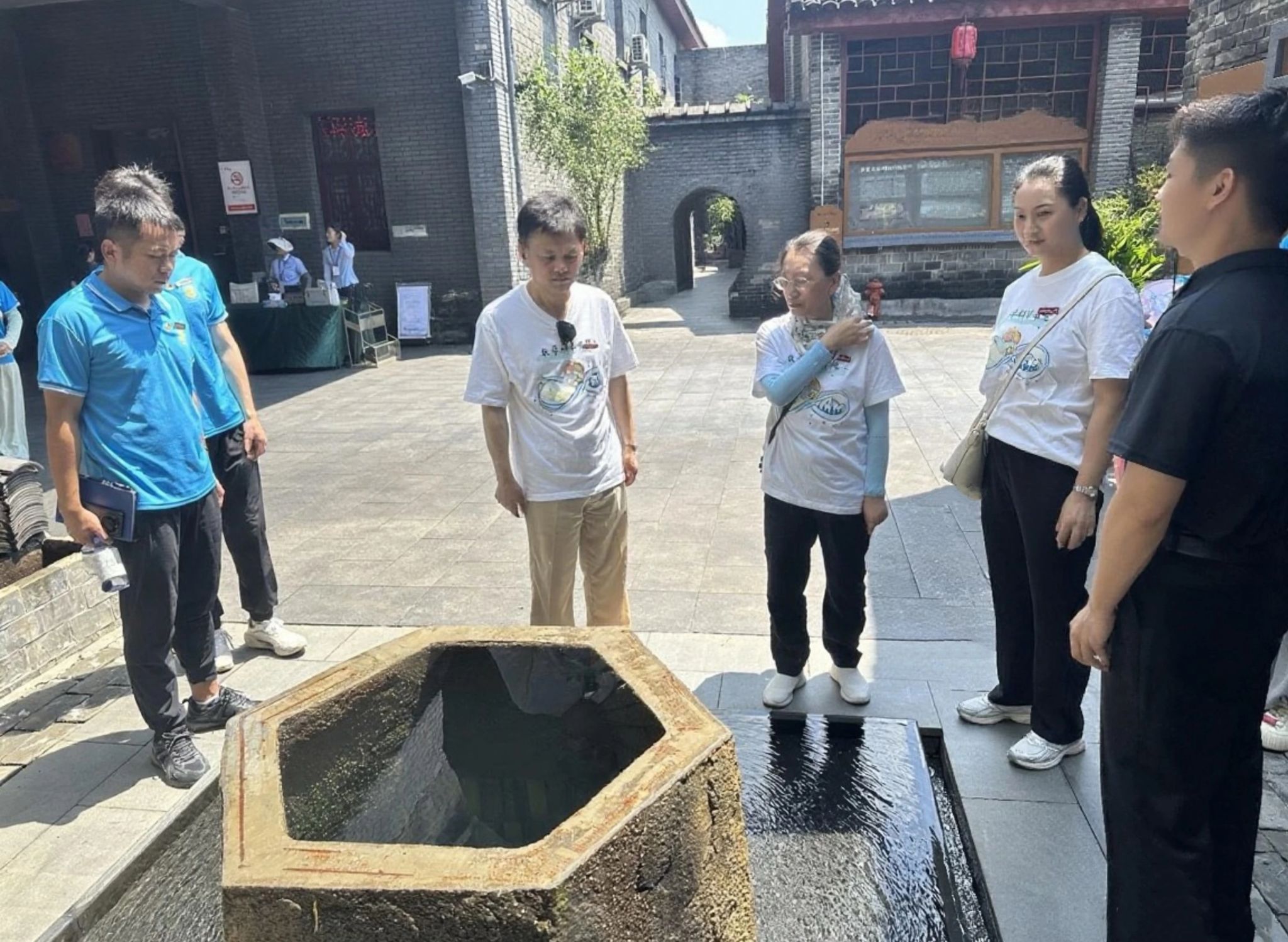 学院党委书记熊鹰、党委副书记刘兴等领导率领团队深入李渡镇,与乐欢副镇长等共同探讨校地合作事宜。在元代烧酒作坊遗址,师生通过宣传片与实地探访,感受千年酿酒匠心与现代科技“活态传承”的魅力。熊鹰鼓励队员要以“数据为尺、智慧为笔”,在乡村振兴的广阔天地绽放青春。