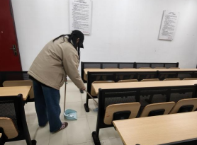 活动现场,志愿者们分工协作、精神饱满,以高度的责任感投入环境整治工作。大家手持扫帚、抹布、垃圾桶等工具,对教学楼教室、公共区域及教师办公室进行全方位清洁整理:细致擦拭黑板门窗、认真清扫地面杂物、规范归置桌面物品,对卫生死角逐一清理、不留盲区。同学们用实际行动诠释劳动之美,经过共同努力,校园教学与办公环境焕然一新,窗明几净、井然有序。