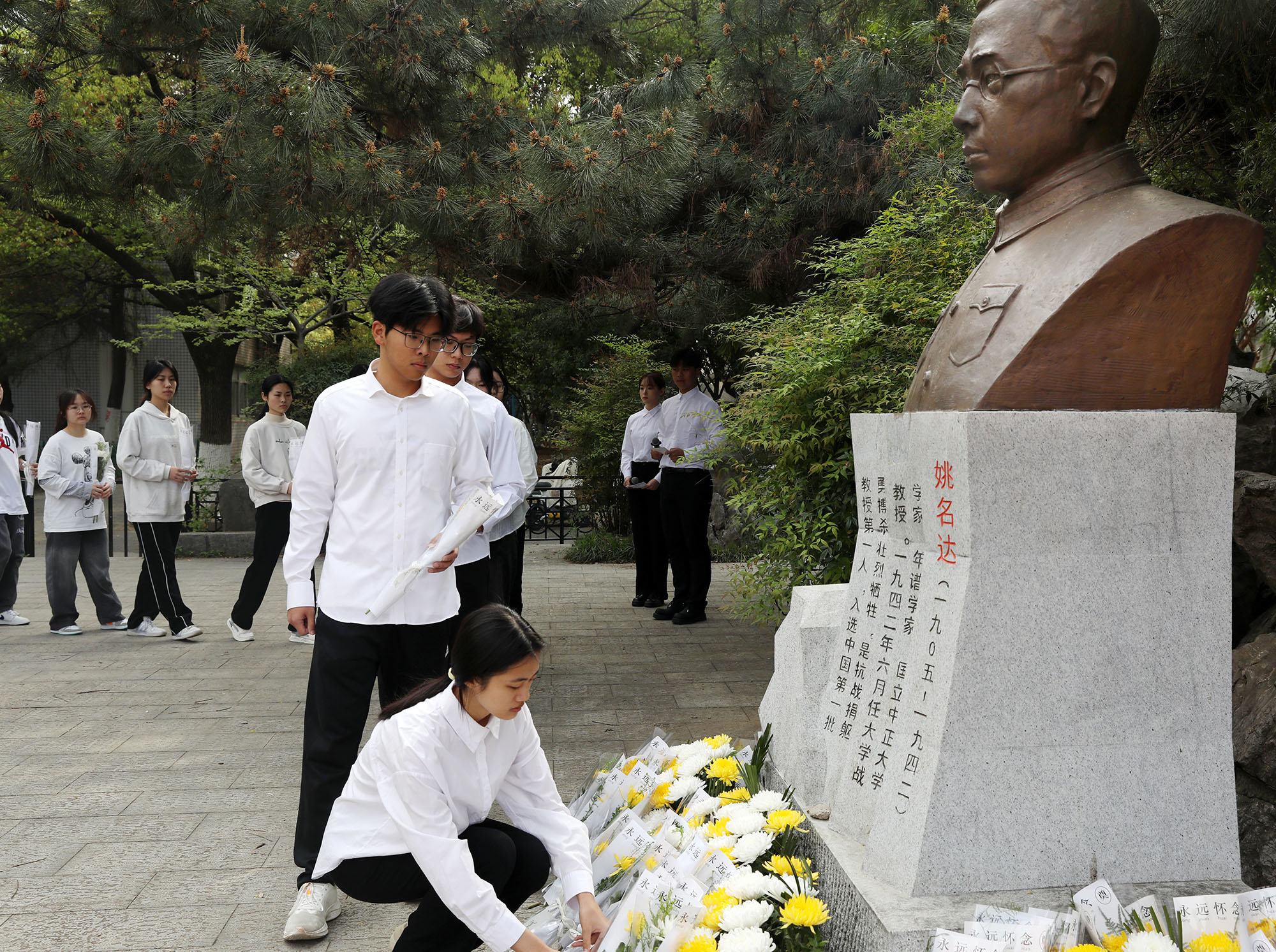 “今天我站在烈士雕像前,手捧的白菊在春风里微颤,真正感受到历史的重量。我们要铭记姚名达烈士的革命事迹,坚定理想信念,让红色基因和革命薪火代代传承。”音乐学院2023级音乐表演2班的李谨睿同学说。