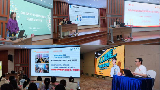 培训期间,董圣鸿以《学习心理与心理健康》为题作首场专题报告。全国民族团结进步模范个人、全国高校辅导员年度人物、中南大学辅导员帕提玛·柯孜尔亚,全国高校辅导员年度人物、吉林师范大学党委学工部副部长赵东方,全国“最美高校辅导员”、北京师范大学党委学生工作部思想政治教育处副处长任雅才,全国“最美高校辅导员”、南华大学党委研究生工作部部长马军,全国“最美高校辅导员”、湖南农业大学辅导员常徕分别作题为《高校铸牢中华民族共同体意识教育路径探索浅析》《辅导员玩转AI的角色转换和网络思政深度思考》《多维思维驱动高校辅导员核心素养进阶之路》《辅导员的职业规划和素质能力提升》《人工智能赋能辅导员思政引领力的实践路径》的专题报告。