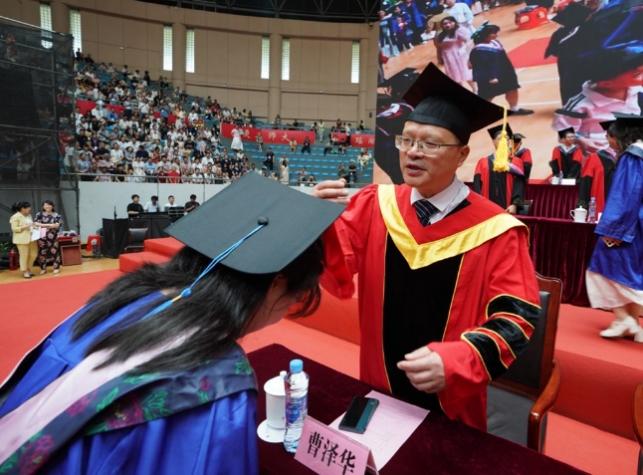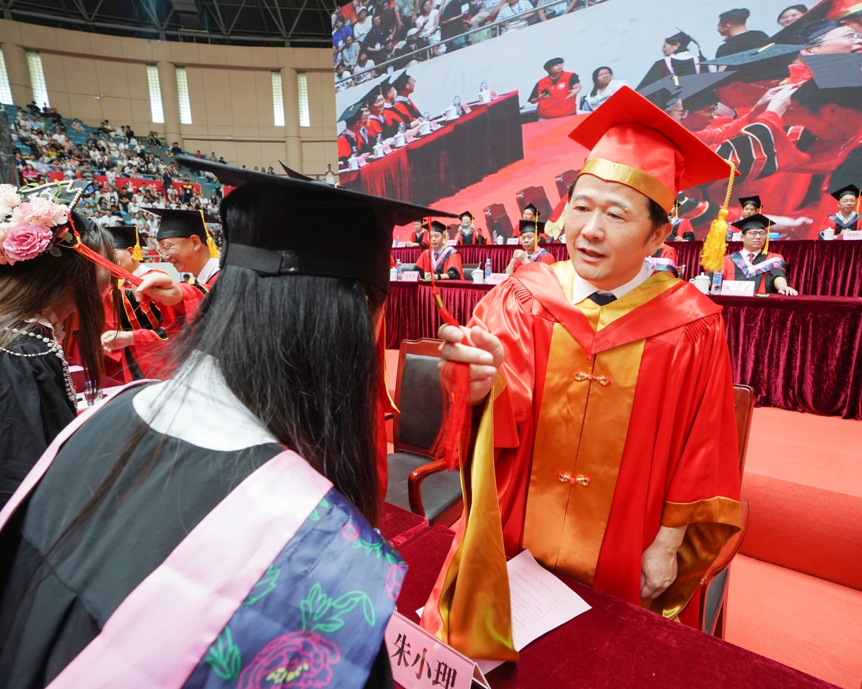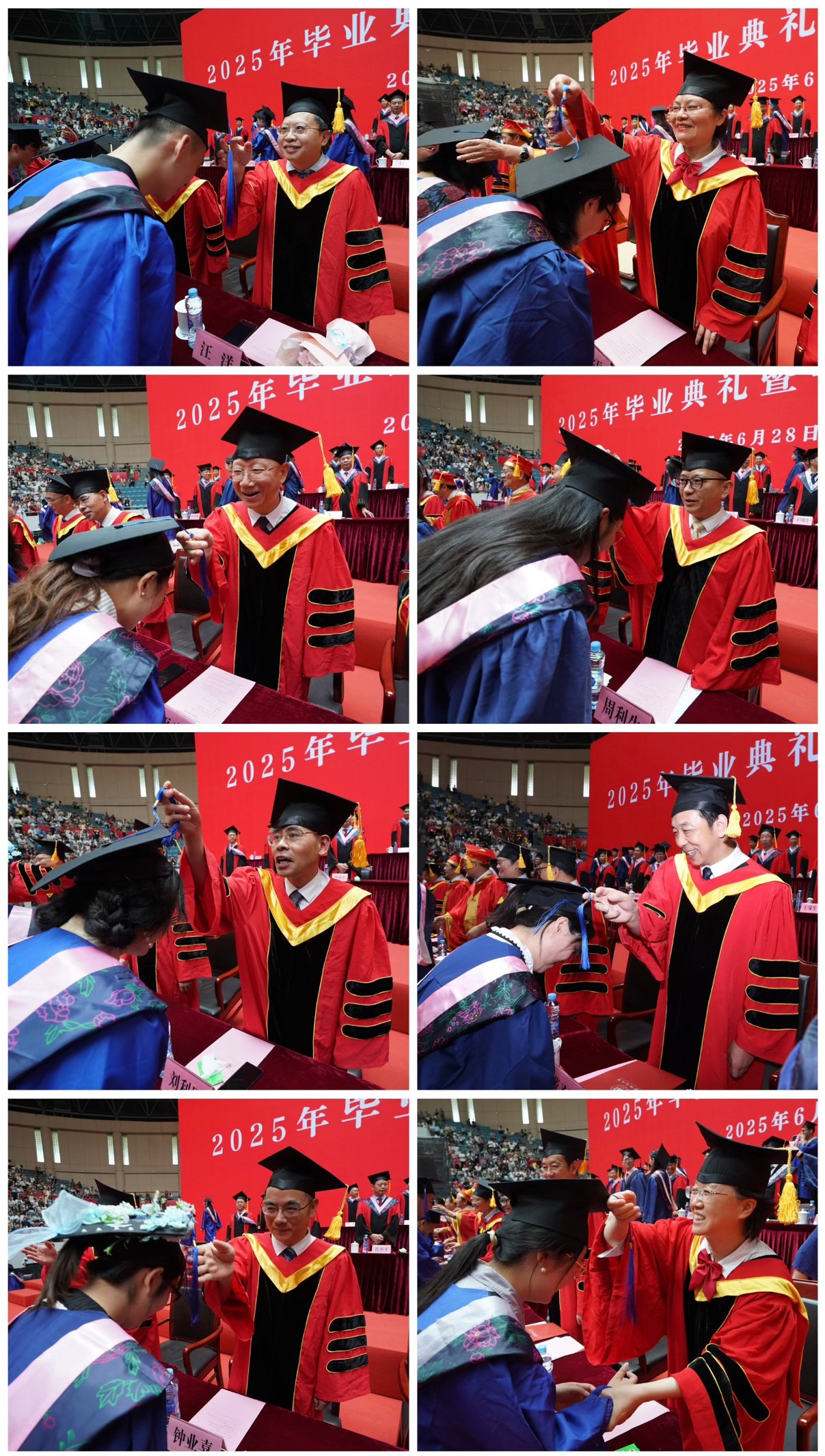 全体校领导和校学位评定委员会委员为参加毕业典礼的每一位毕业生拨穗正冠并合影留念。现场热烈而温馨,掌声与欢呼声此起彼伏。