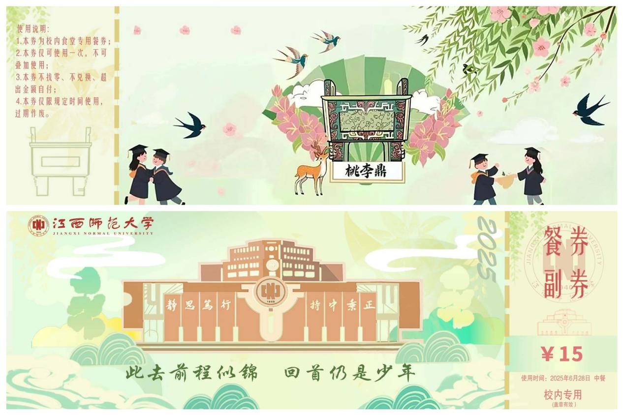 场馆内,“静思笃行 持中秉正”的八字校训格外醒目,印有“云程发轫 培风图南”等标语的红色竖幅与毕业生们手中印着校徽和校名的小旗帜交相辉映;场馆外,精心设置了主题背景墙、展架、校友联络墙等多个毕业打卡点。典礼开始前后,毕业生们身着学位服,纷纷与亲属、老师和同学在场馆内外拍照留念,定格住这一刻的激动与不舍。学校为参加毕业典礼的2025届毕业生提供了一张特别的“毕业饭票”,上联可永久保存,下联在学校食堂用餐时回收。