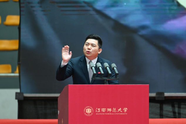 校友代表、软件学院2012届校友,星火智云科技集团公司创始人、董事长兼CEO郭兴敏发言,他深情回顾在母校的青春岁月,以自身创业经历为引,强调选择与行动、正视失败、终身学习的重要意义,勉励学弟学妹们在人生新征程中敢想敢为、脚踏实地,开拓属于自己的天地。