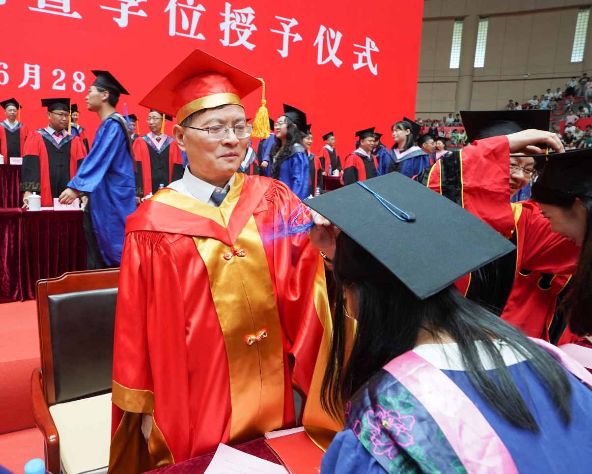 校党委常委、副校长董圣鸿主持典礼。校党委常委、副校长周利生宣读学校关于2025届毕业生学位授予的决定,授予67名毕业研究生博士学位,1075名学术学位研究生硕士学位,1733名专业学位研究生硕士学位,70名具有研究生毕业同等学力人员硕士学位,6523名普通本科毕业生学士学位,695名普通本科毕业生荣誉学士学位等。