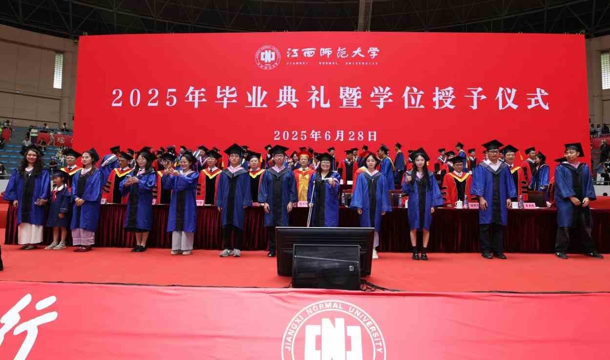 在慷慨激昂的《江西师范大学校歌》大合唱声中,2025年毕业典礼暨学位授予仪式落幕。此后,万千鲲鹏将从瑶湖振翅高飞,携带着师大的精神烙印,奔赴四面八方,去往更加广阔的天地,书写属于新时代师大学子的辉煌篇章。