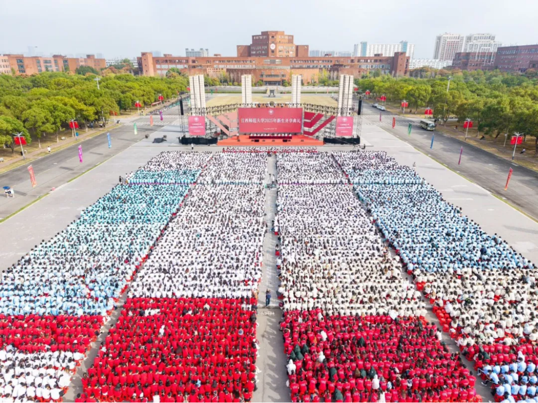 同学们,你们怀揣梦想走进江西师范大学,开启了属于自己青春奋斗的新征程。今天的师大,因为你们而更加充满了朝气和活力,也因为你们而增添了新的生机和光彩。你们是校园中的靓丽风景,更是师大卓越基因的传承者和“双一流”建设的参与者。在你们之中,有怀抱教师梦想,以学校2025级录取本科生中历史组最高分的优异成绩成为公费师范生的熊雅文同学;有在中国国际大学生创新大赛中斩获金奖的经济与管理学院研究生胡一凡同学;有在世界大学生运动会中勇夺冠军的体育学院研究生刘柔镁、吴伊慧同学;有获得全国高校音乐展演金奖的音乐学院研究生杨柳菁同学;有攻读硕士研究生期间在国际一流期刊JACS上发表学术论文的化学与材料学院博士研究生何峰同学;有在贵州望谟与新疆克州用青春践行支教使命归来的研究生支教团李艺、金杰等17位同学;也有跨越山海到江西师大勤学苦读,实现本硕博“三级跳”,成为我校首位理科外籍博士研究生的欧林同学。“得天下英才而育之”,这正是莘莘学子与师大双向奔赴的美好写照。