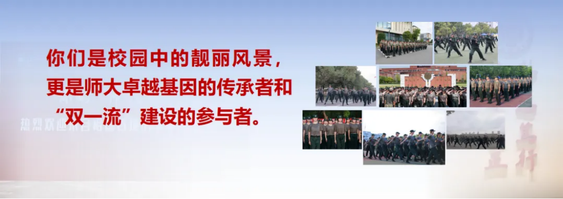 同学们,你们每一位都以自己独特的拼搏姿态,一路披荆斩棘,满怀荣光地汇聚在美丽的师大校园中。你们即将秉承着“静思笃行、持中秉正”的精神,传承师大卓越基因,开拓未来新篇章。希望你们在师大锤炼成才,努力把自己造就成为有家国情怀、有高远抱负、有挺膺作为的优秀学子,以实际行动诠释自己的初心作为,用真实优异的成绩证明自己的人生价值。