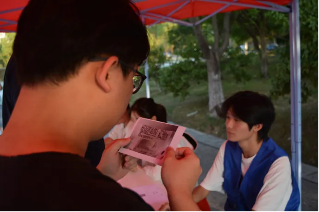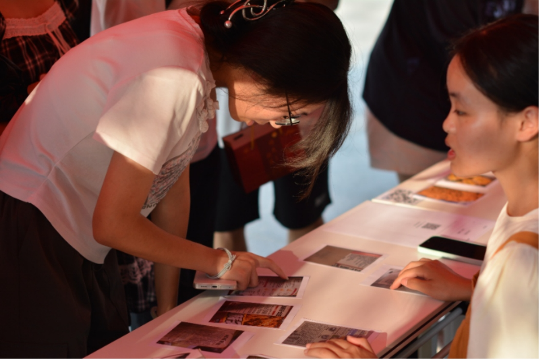 网红食品前,同学们细细查验。