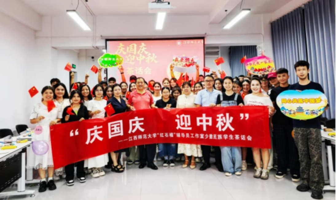 在中秋、国庆双节来临之际,为深化民族团结教育,铸牢中华民族共同体意识,9月28日晚,学生处在一站式学生社区举办“庆国庆 迎中秋”少数民族学生茶话会。驻江西省教育协调小组组长王安防、党委学工部副部长袁蓉、民族事务办帕日则与50余名少数民族学生代表欢聚一堂,共叙情谊,同庆佳节。