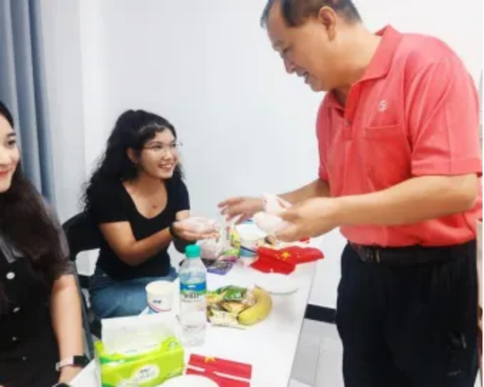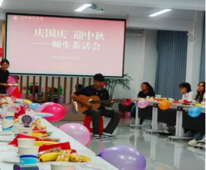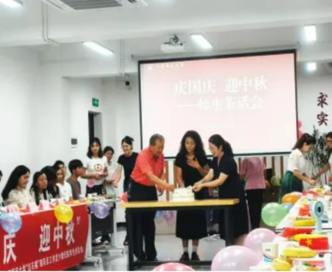 茶话会在轻松温馨的自我介绍中拉开序幕。随后的集体庆生环节将气氛推向高潮,王安防、袁蓉与祖拉莱·太来提同学共同切分蛋糕,全场齐唱生日歌,歌声中既有同窗情谊的温暖,也饱含对祖国华诞的深情祝福。