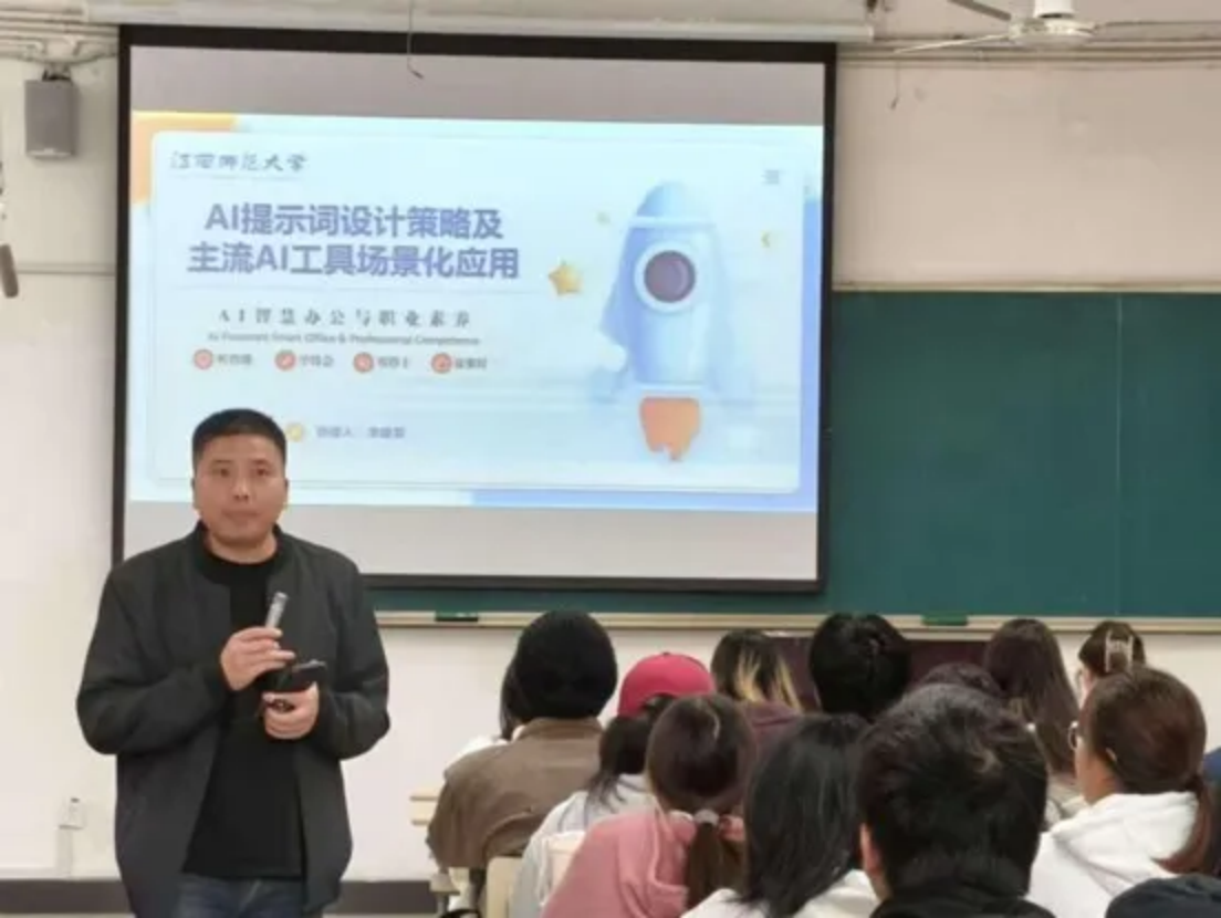 2025年11月4日,学校第三届“阳光”成长训练营系列活动之“玩”转AI主题讲座在惟义楼7206教室顺利举行。本次讲座以“AI提示词设计策略与典型场景应用”为主题,旨在提升学生的自主学习能力、创新思维与协作交往能力,助力学生综合素质与就业竞争力的双提升,吸引了全校百余名学生积极参与,现场气氛热烈,交流互动频繁。