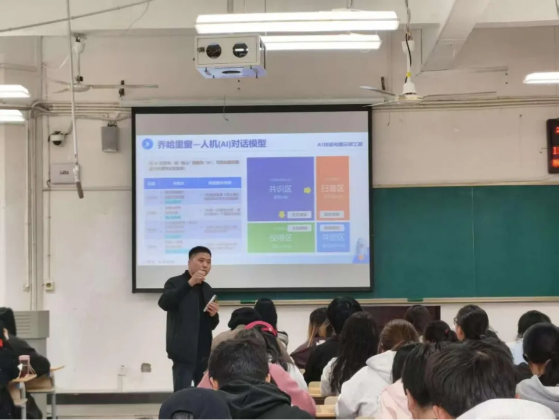在讲座的核心环节,李建军老师巧妙地将乔哈里视窗——沟通视窗模型应用到与AI对话的场景中,并在此基础上构建了乔哈里视窗提示词工程理论体系。他深入浅出地讲解了如何将模糊的需求转化为清晰的指令,并强调了在不同场景、区域内与AI对话时需要注意的不同方式。这种创新的教学方法,不仅拓宽了同学们的思维视野,还帮助他们掌握了与AI进行高效沟通的关键技巧,为同学们在未来的AI应用中提供了重要的理论支撑。