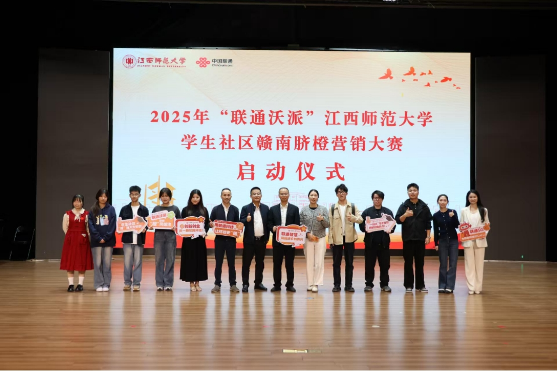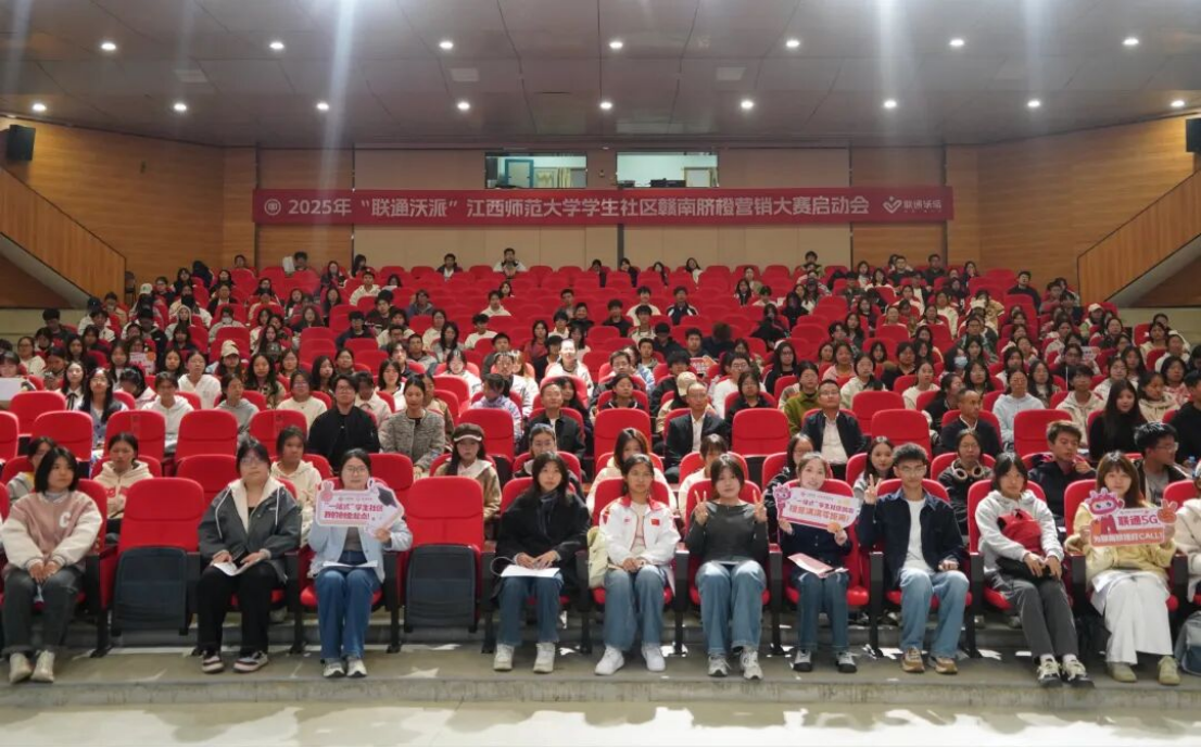 近日,“联通沃派”江西师范大学学生社区赣南脐橙营销大赛启动仪式在实验剧场举行。党委学生工作部副部长、学生处副处长潘子健,中国联通南昌市分公司副总经理吕裕斌等企业代表与参赛学生共计500余人参与。
