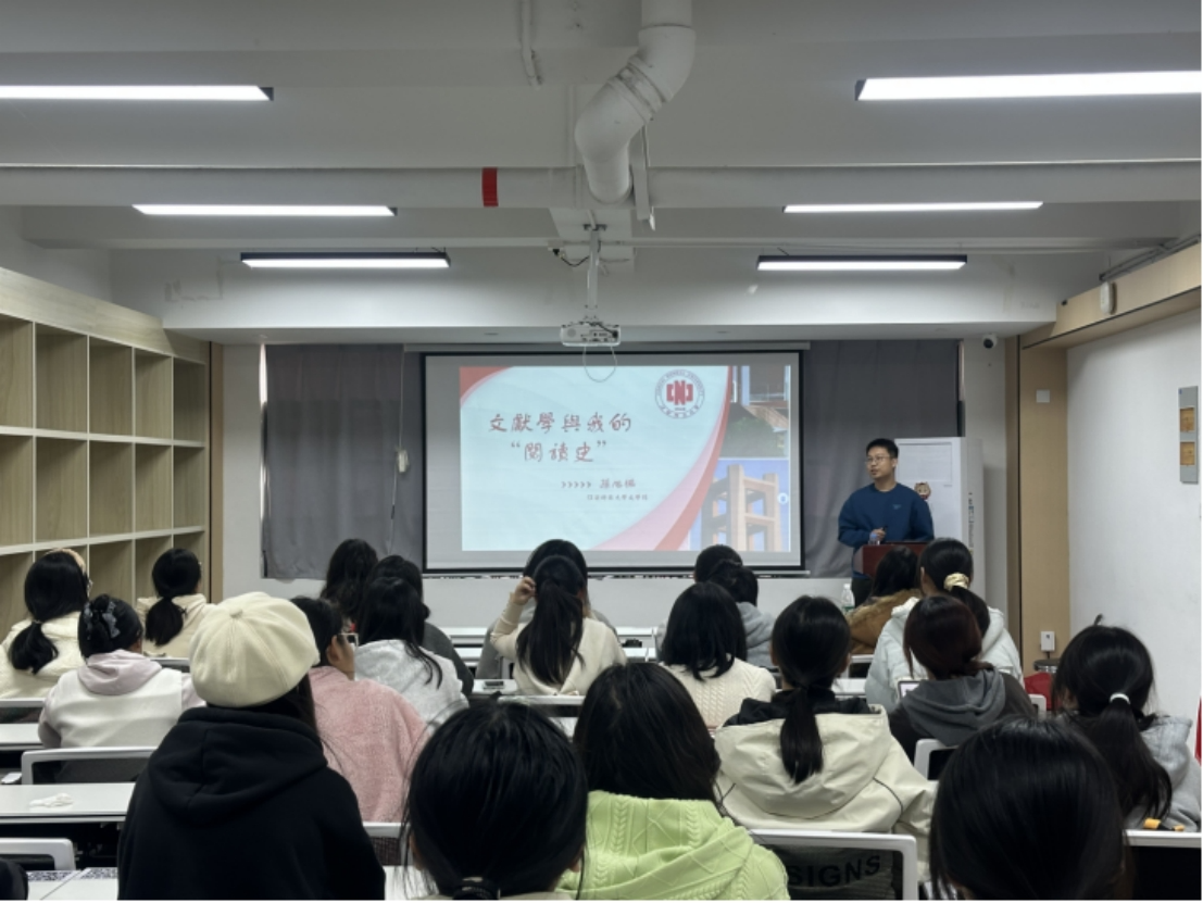 11月25日下午,“共鸣”文化育人辅导员工作室在“一站式”学生社区红色讲堂开展“书香进社区”系列活动(第二期)。本期活动特邀江西师范大学文学院孙旭枫老师以《文献学与我的“阅读史”》为主题,为在场学子带来了一场融合传统文献智慧与现代阅读方法的学术盛宴。