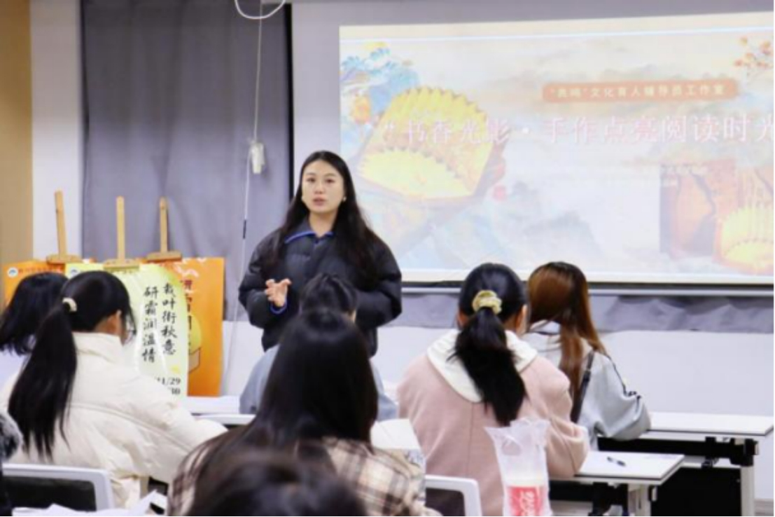 活动伊始,工作室主持人任倩倩老师向同学们介绍了活动背景与初衷,“希望通过亲手制作一盏书灯,点缀书香,用手作点亮同学们的阅读时光”,通过“书籍+光影+传统文化”的融合体验,让参与者在手作中感受阅读的别样魅力。