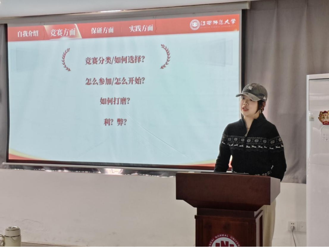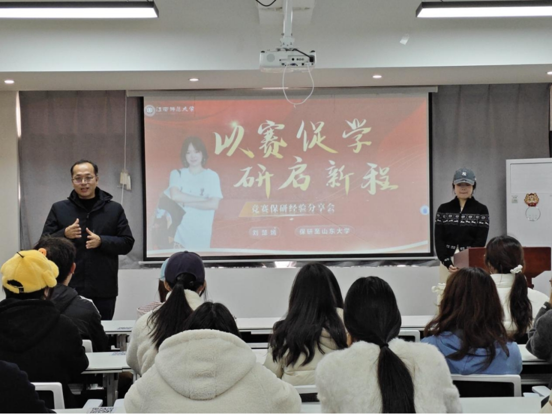 12月28日,“研践”辅导员工作室于学校“一站式”学生社区(一期)举办赛途筑光,研路领航—竞赛与保研经验专题分享会,特邀竞赛经验丰富且成功保研至山东大学的刘楚嫣同学主讲。