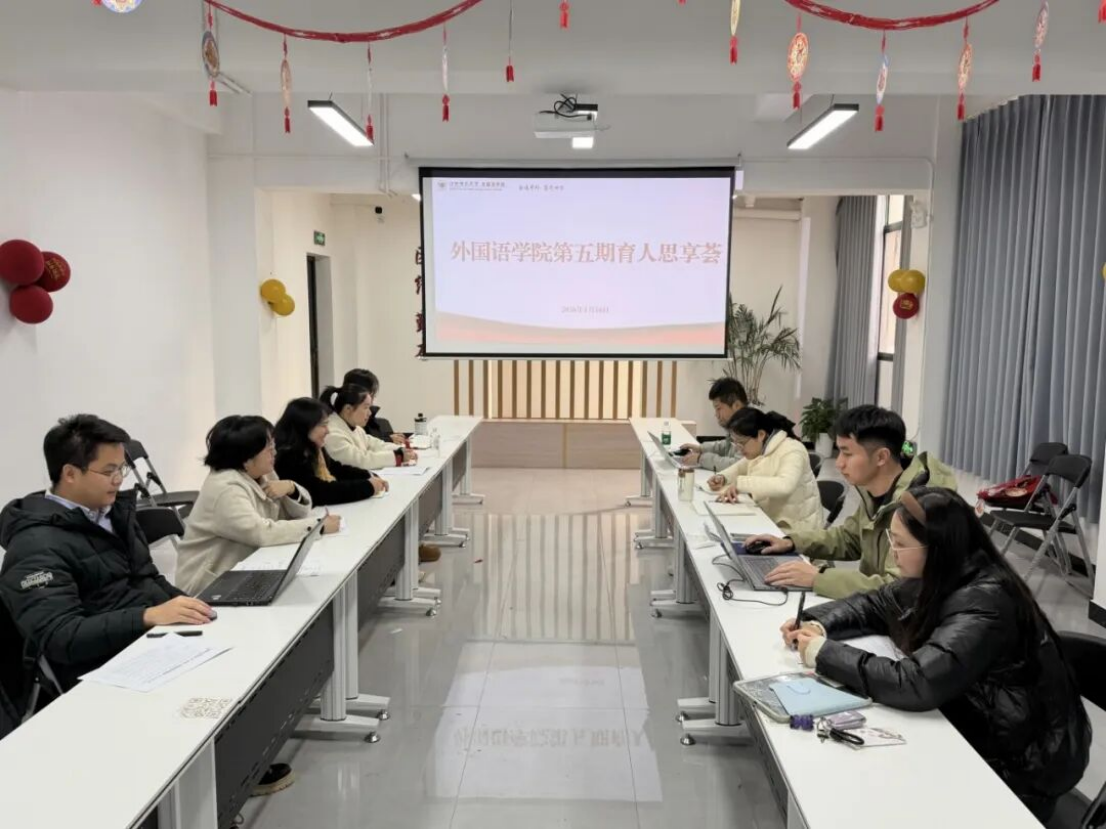 1月16日上午,外国语学院在“一站式”学生社区(二期)举办第五期“育人思享荟”暨大学生创新创业比赛经验分享会,全院学工干部参加。