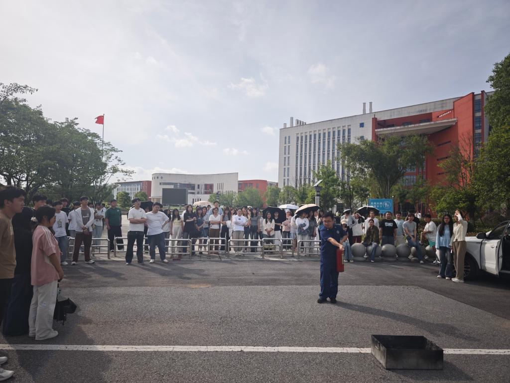 活动伊始,信江大队宣传站副站长陈轲结合高校火灾案例,深入剖析宿舍违规用电、实验室操作不当等安全隐患,强调“预防为主,防消结合”的重要性。通过互动问答、视频演示等形式,详细讲解火场逃生技巧、灭火器使用方法及报警注意事项,师生反响热烈。