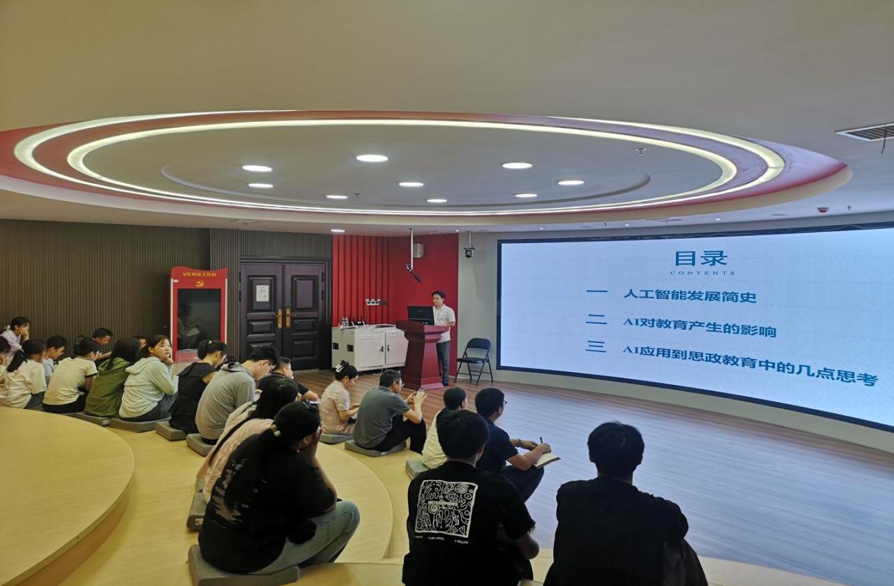 活动伊始,鲁超飞老师作主旨报告。他系统梳理了人工智能的发展历程,辩证分析了AI技术对教育带来的机遇与挑战,并重点围绕“思政教育如何与AI有机融合”分享了建设性观点,引发与会者深入思考。