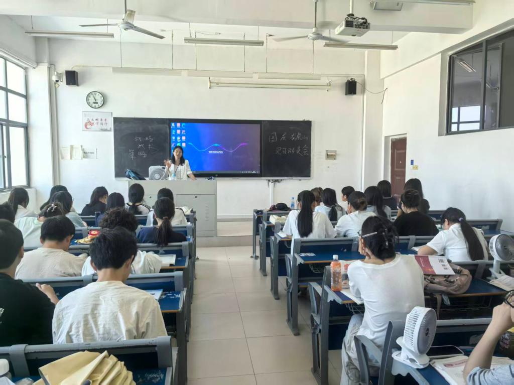本次实践主要分导游讲解和一线支援岗位,在实训活动开始前,学院安排了一场安全教育讲座,以确保学生能够在参与实训活动时安全无忧。讲座由副院长林苑主持,她向学生们介绍了该景区的安全规定和紧急应对措施,同时强调了旅行中的安全问题、防溺水等重要知识,以及团队合作的重要性,鼓励学生们彼此照顾、相互扶持,确保大家的安全。
