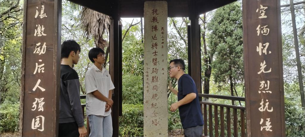 10月15日,为深入挖掘本土红色文化资源,传承“抗战精神”,思政部教师曾小忙带领校学生会成员赴鹰潭公园“铭思亭”开展“一线课堂”教学活动。