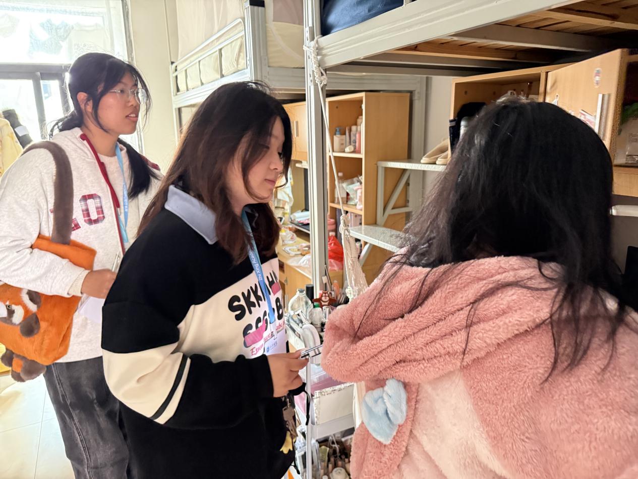 为做好本次工作,知行书院组建了由全体辅导员和学生干部组成的专项工作组,坚持“全覆盖、无死角、零容忍”为原则,重点针对寝室大功率电器违规使用、私接乱拉电线、线路老化破损等高频安全风险点展开细致检查。排查过程中,工作人员逐一进入各寝室,认真查看电源线路、电器使用情况,对发现的隐患当场记录,并向学生耐心讲解安全规范,引导大家树立“安全第一”的意识。