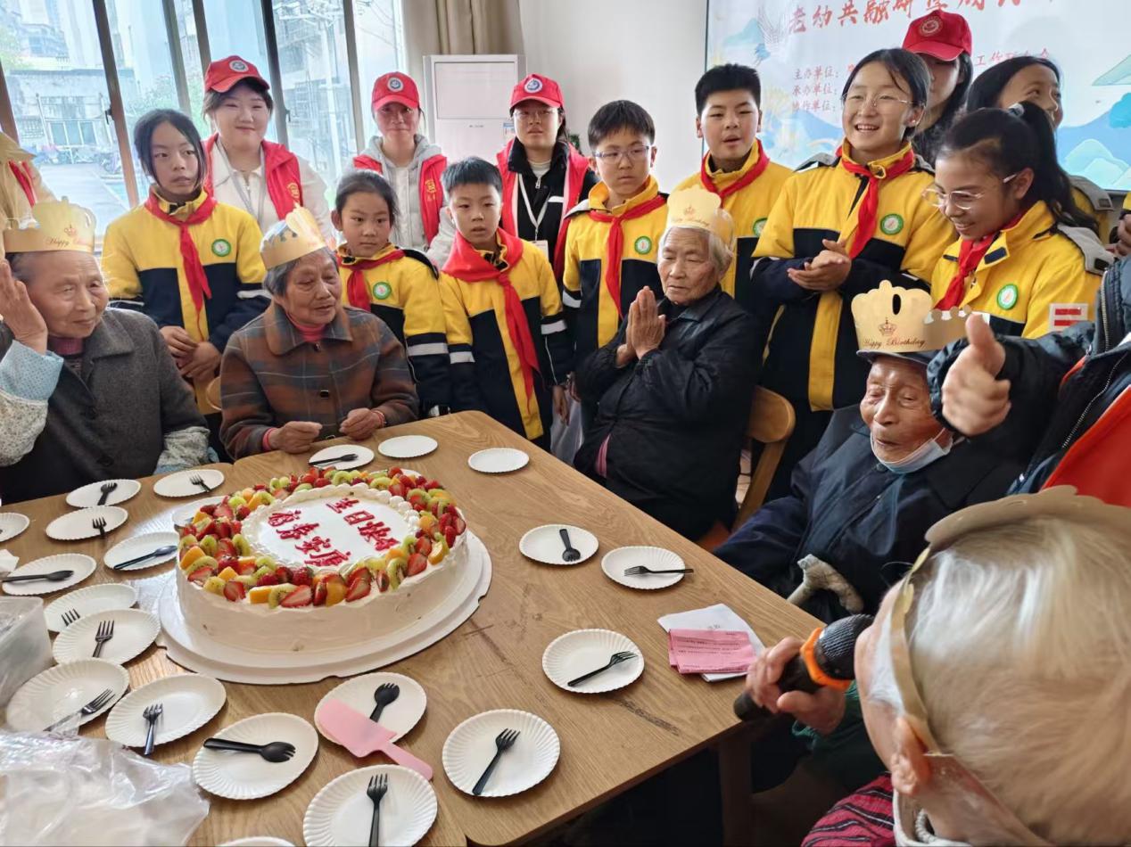 随后,趣味游戏欢乐开启。志愿者们的生动演绎引得老人们积极抢答,现场欢声笑语,暖意融融。游戏过后,志愿者们与老人们共同举办集体生日会,一同切分蛋糕,香甜漫溢的蛋糕承载着对老人们的美好祝愿。