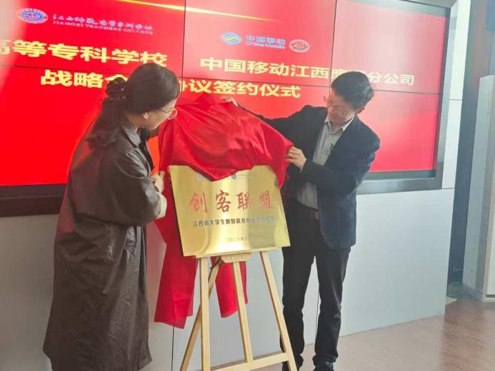 为深入落实“数智领航・青春建功”江西省大学生就业促进计划,搭建校企协同育人平台,4月1日上午,江西师范高等专科学校创客联盟成立仪式顺利举行。副校长江艳,鹰潭市移动分公司副总经理戴建平及相关人员共同出席了揭牌仪式。