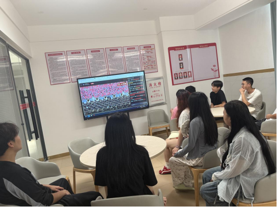 2025年9月3日,纪念中国人民抗日战争暨世界反法西斯战争胜利80周年阅兵式在天安门广场隆重举行。为了让学生们感受这一盛大历史时刻,学工处组织学生在一站式学生服务社区观看了阅兵式的现场直播。