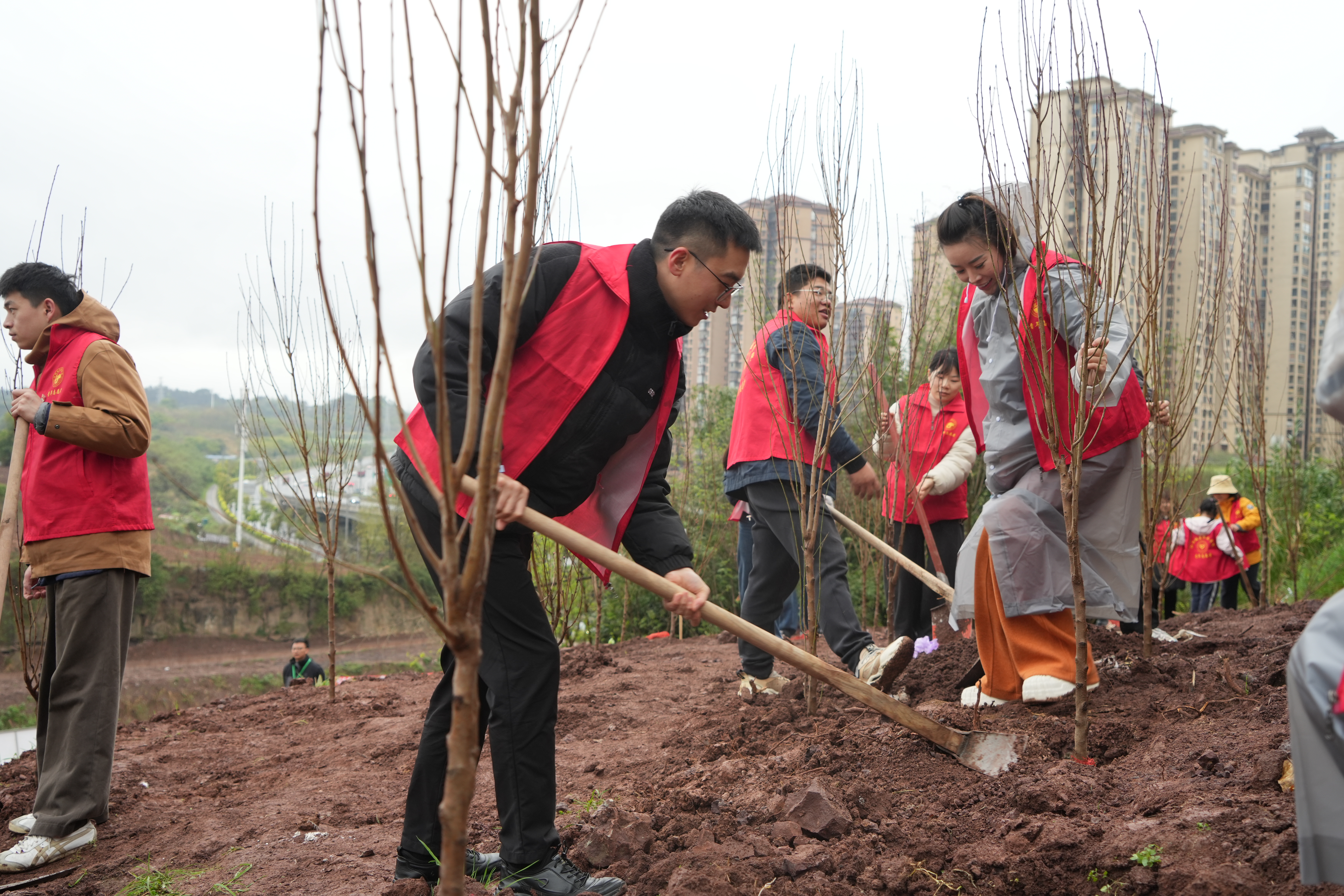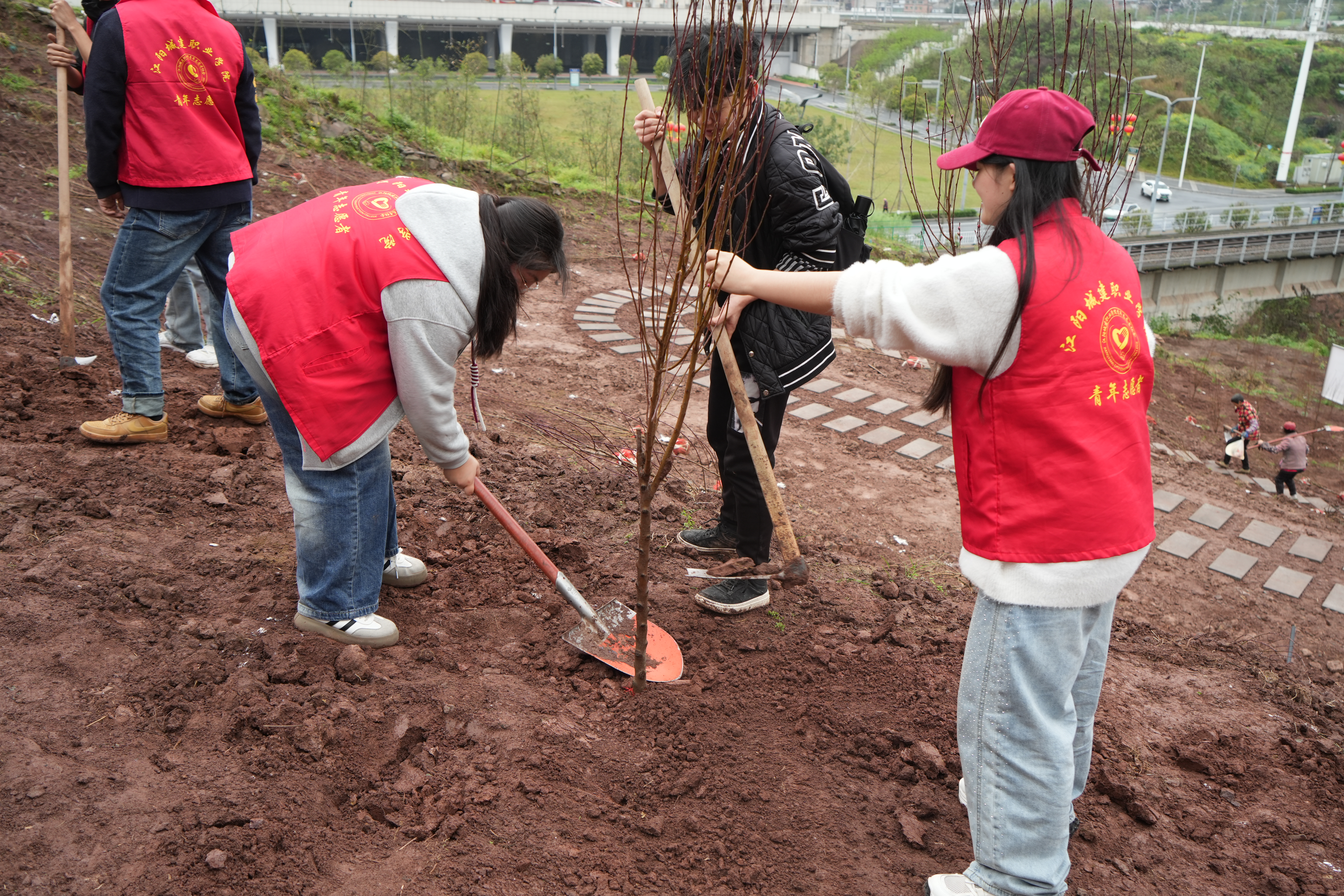 2026年3月12日是我国第48个植树节。为深入贯彻习近平生态文明思想,践行“绿水青山就是金山银山”理念,引导青年学子厚植生态情怀、勇担社会责任,共青团江阳城建职业学院委员会于3月14日下午,组织师生志愿者前往泸州市高铁站附近开展“隽青有约,共植青绿”植树实践活动。师生志愿者们以实际行动植绿护绿、美化环境,推动生态教育与实践育人深度融合。