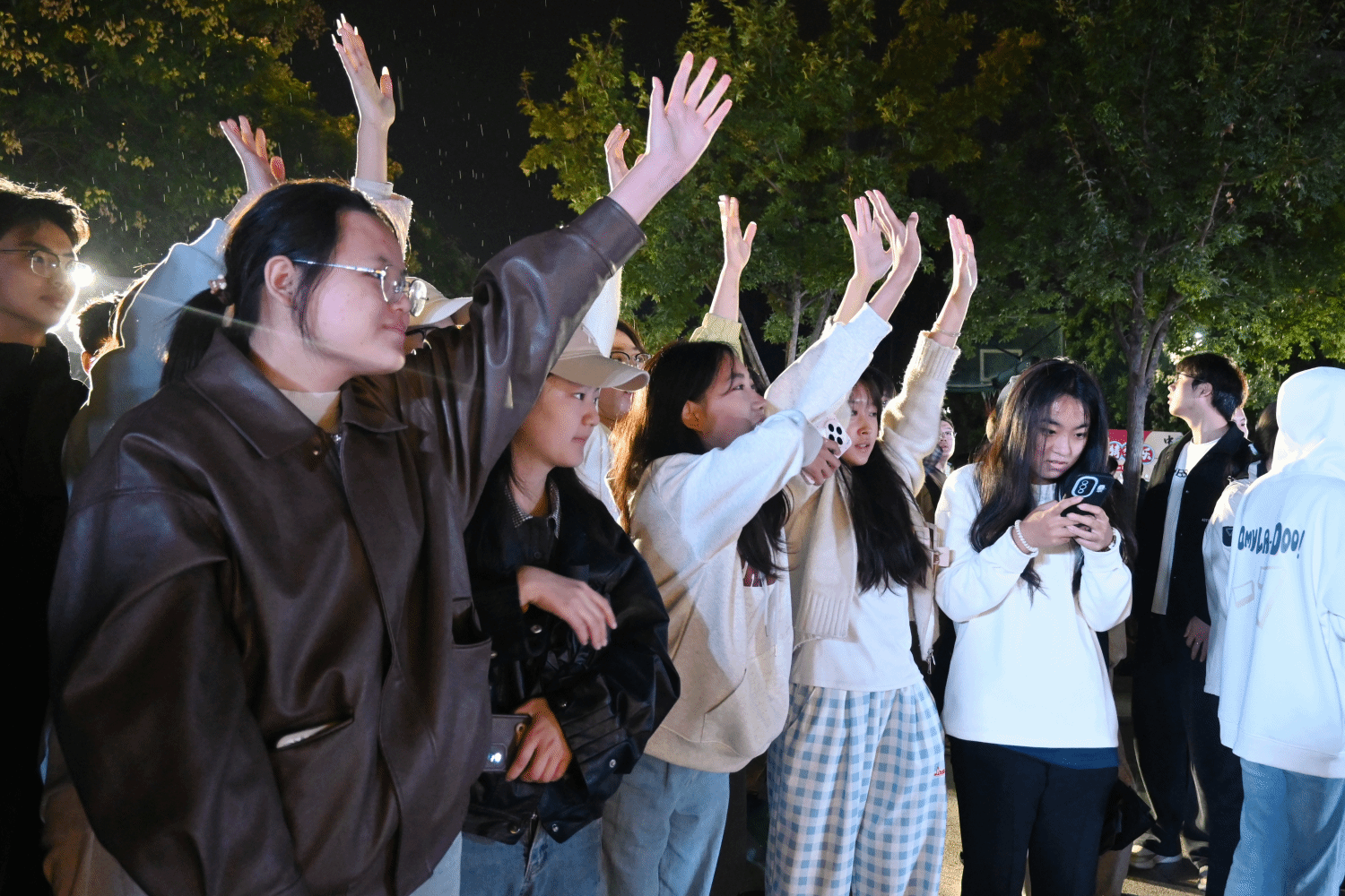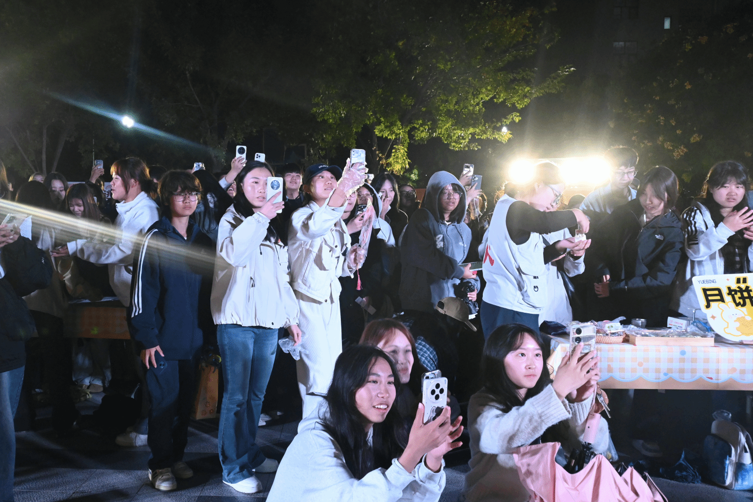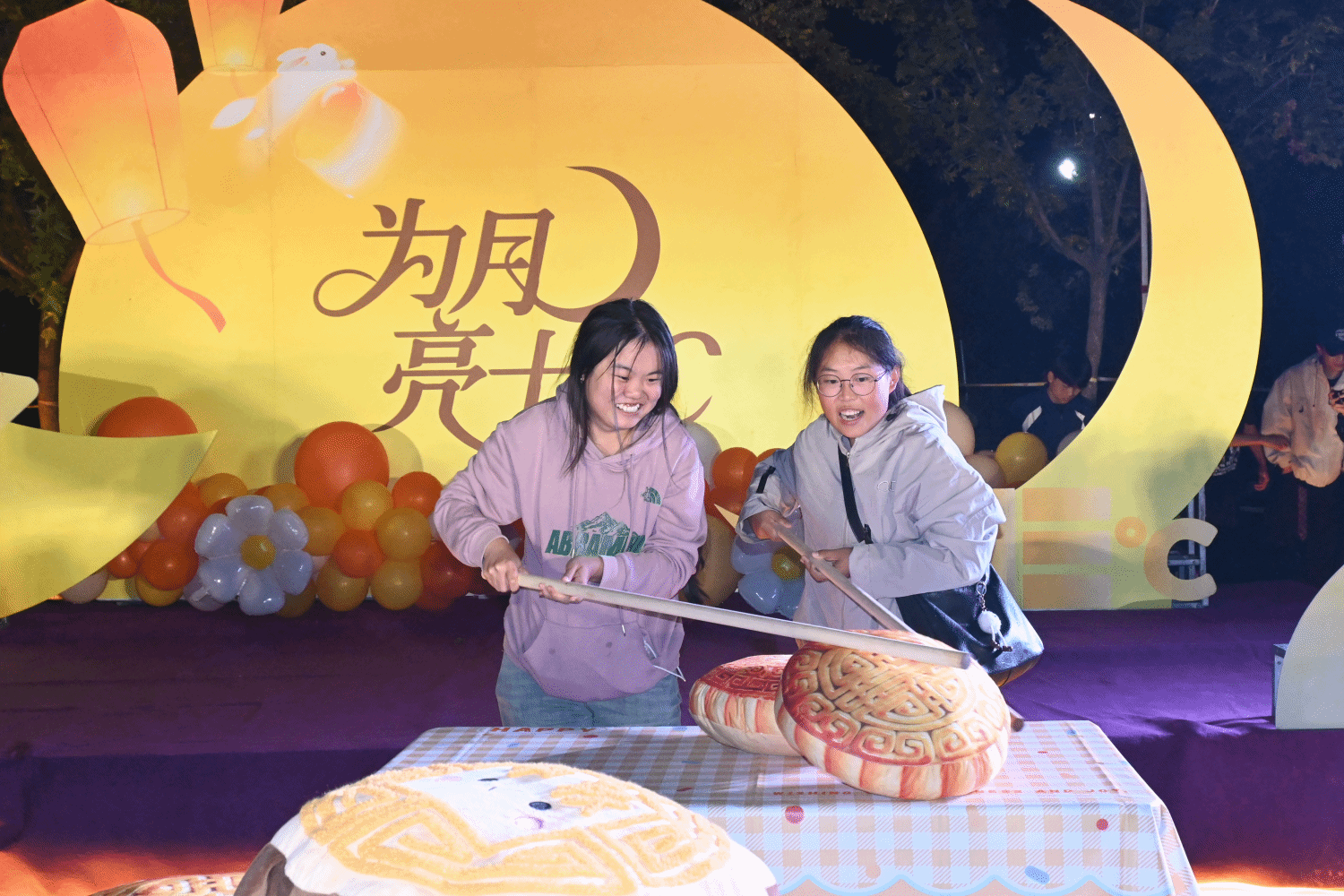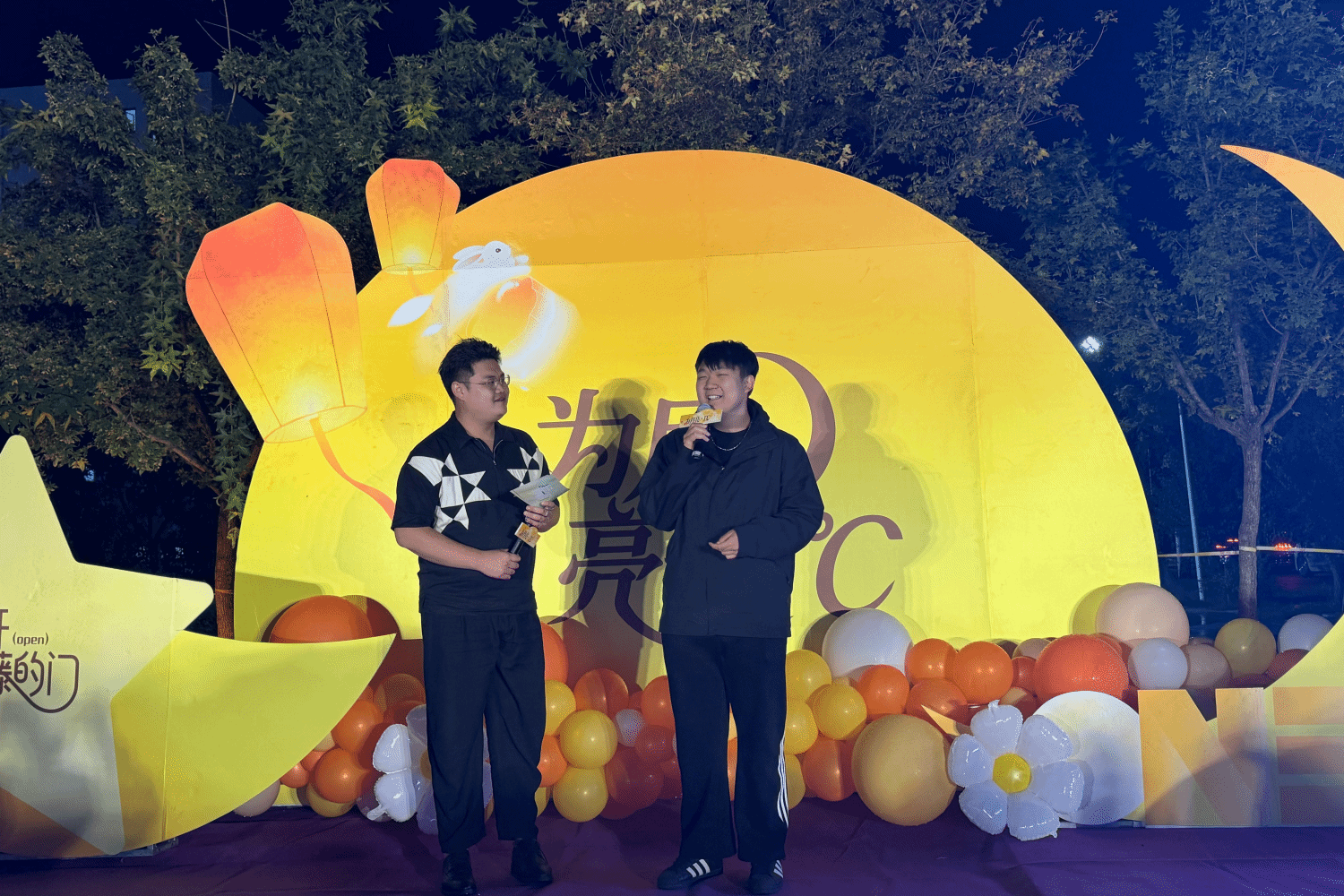 互动环节的设计更是别出心裁、层层递进。“‘圆’来如此”环节中,2025级新生代表孙浩凯分享了初入校园的点滴心路,“还记得刚来时,心中满是陌生与忐忑,也很想家。但渐渐地,我熟悉了课堂,结识了伙伴,而此刻,我竟能与千余名师生共赏明月,甚至自信地登上舞台表演,真切地感受到了一种别样的家的温暖。”他的话语真挚而朴实,既有对故乡的思念,也饱含对未来的憧憬,引发了全场师生的深深共鸣。“‘月’玩‘月’心动”环节则巧妙融合现代科技与传统文化,通过“赛月饼”“嫦娥奔月”“福气满满”三个轻松有趣的小游戏,点燃了现场的欢笑声浪。而“捞个月亮”环节更别具匠心,参与者使用超长筷子夹取月饼的趣味挑战,将整场气氛推向高潮。在这轮象征团圆的明月之下,师生、生生之间的情感悄然交融,校园如“家”一般的温暖氛围愈发浓郁。连清冷的月光,仿佛也被这温暖的场景所感染,悄然上升了1℃。