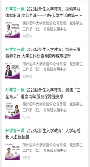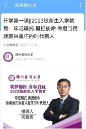 落实“开学第一课”要求,依托网络平台线上线下同步开展以“筑梦锦医 青春启航”为主题的新生入学教育,教育内容涵盖“爱国主义教育”“理想信念教育”“爱校荣校教育”“专业职业教育”“文明修身教育”“优良学风教育”“国防教育”“安全法制教育”“身心健康教育”九个专题教育模块。学校领导班子全体成员率先垂范,走进入学教育课堂,结合工作实际,围绕各个主题,根据新生特点,结合学校发展和育人特色,以教育引导为主,丰富内容形式,拓宽载体渠道,贴近学生实际,开展新生入学教育工作,特色鲜明、亮点突出。
