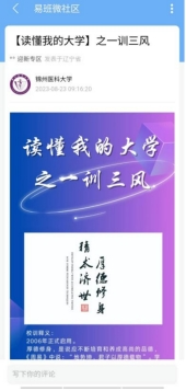 学校坚持“五化”协同发展,逐步形成“1+2+3+5+N”锦医式工作模式,即通过机构规范化、制度完善化、团队精英化、活动丰富化、应用特色化建设,利用“一个中心(学校易班发展中心)、两支队伍(学校易班工作站、学院易班工作站)、三个平台(学校易班网、“锦医大学生”微信公众号、学院易班网)、五类内容(红色育人、传统文化、青春励志、专业指导、健康成长)、N项活动(开展多项活动)”,按照“一月一主题,月月有精品”的思路,搭建平台载体,形成了“点—线—面”有机结合的多层次、立体化网络思政教育工作矩阵。