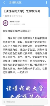 结合“易班”网络思政平台特点,提前谋划,精心设计易班迎新邀请信随录取通知书向本科新生发放,明确注册流程、认证时间和认证字段,及时推送《易班|筑梦锦医· “易”路启航 2023级新生注册及认证指南》,引导新生下载易班APP并进行实名认证,确保新生易班注册100%。