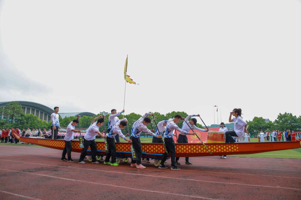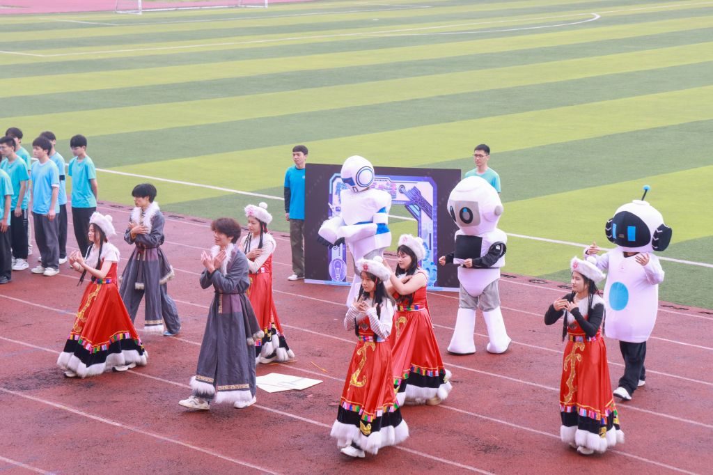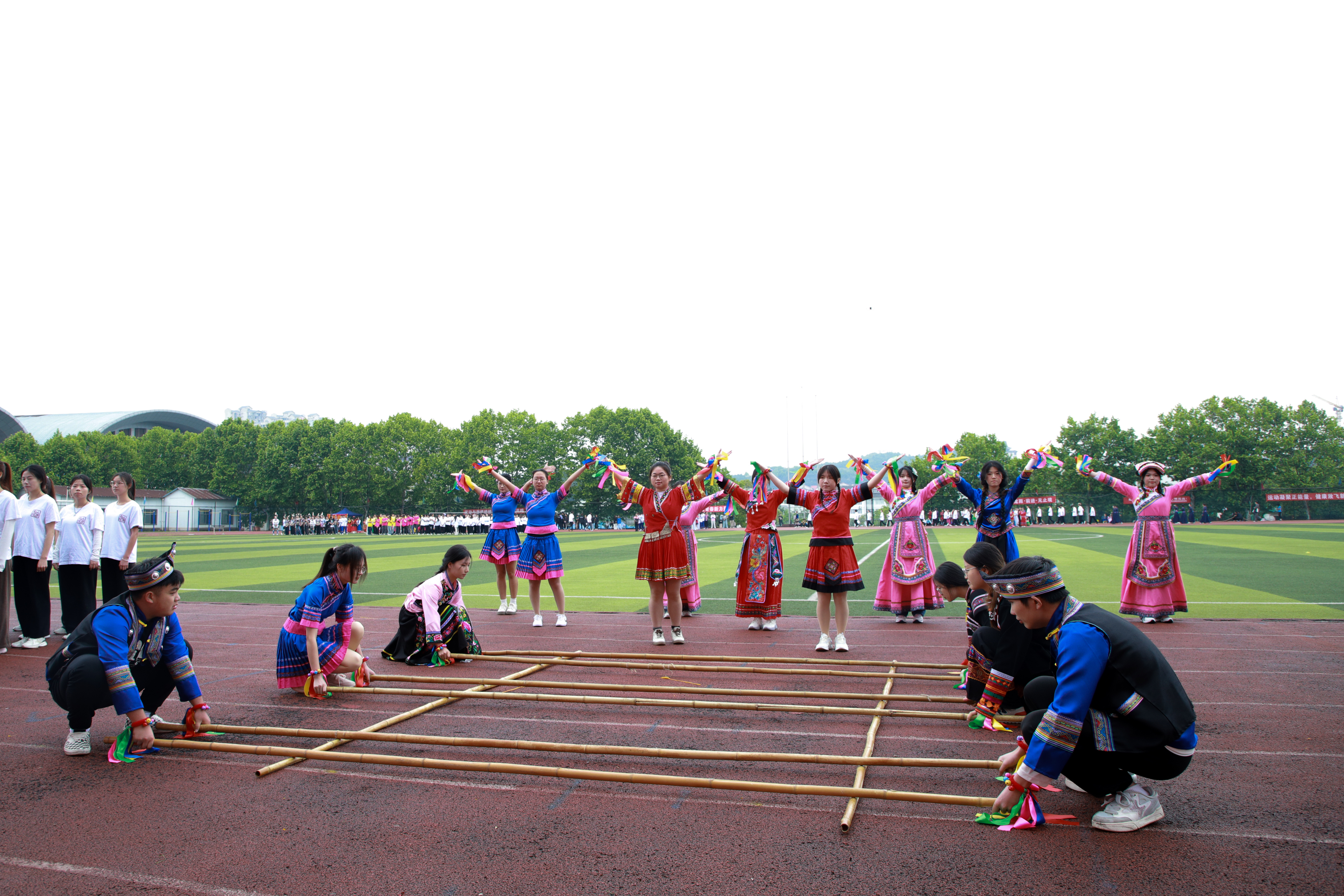 开幕式表演精彩纷呈,高潮迭起。各学院学生代表身着绚丽多彩的少数民族服饰,带来的民族韵律操《爱我中华》、民族舞蹈合集、《携手共绘同心圆唱响“美丽中国”梦》等节目,生动诠释了各民族像石榴籽一样紧紧抱在一起,携手共进、团结一心的美好画面。高脚竞速、板鞋竞速、赛龙舟三项民族传统体育项目展示,不仅呈现出传统体育的独特魅力,更彰显出拼搏进取的精神与团结协作的风采,让观众感受到民族体育的独特魅力。