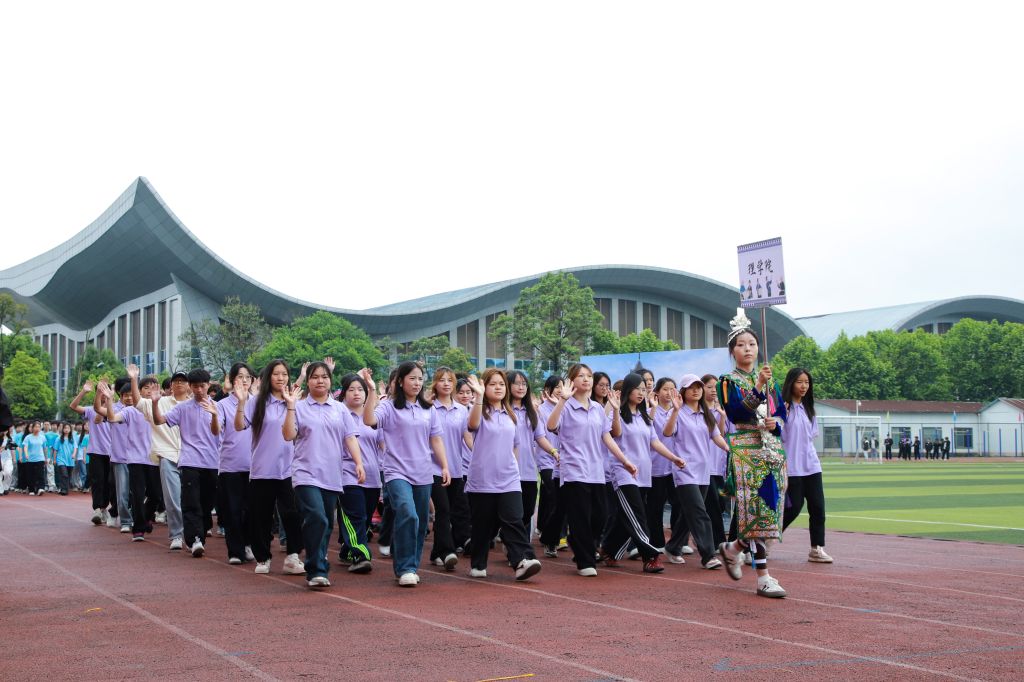 15个二级学院方阵依次登场,他们脸上洋溢着青春的笑容,踏着整齐有力的步伐走向主席台。《侗歌声声唱给党》《红枫与胡杨》《黔岭竹林浪舞飞虹》《醉美侗寨》《踏歌苗乡》等入场节目,将独特的民族风情与青春活力完美融合,展现了凯里学院深厚的文化底蕴与蓬勃生机。