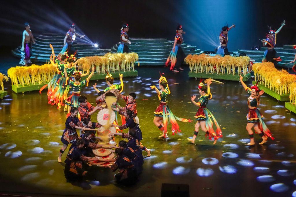 第三篇章《阳光儿女》中的“苗族儿女”们以舞为语,跳出对生活的炽热;以情为韵,唱出对未来的憧憬。他们在舞台上用灵动的身姿诠释着幸福的蔓延,让生命的活力尽情释放。
