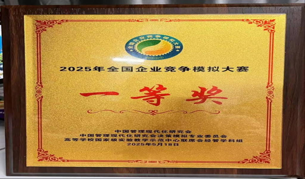 5月16日至18日,2025年全国企业竞争模拟大赛总决赛在成都西南财经大学火热开赛。此次大赛由中国管理现代化研究会决策模拟专业委员会主办,西南财经大学承办,吸引了全国688所高校近5万名师生参赛。在这场高手云集的赛事中,我校旅游学院学生何佩瑜、廖玉迪、付全有组成的“无敌暴龙队”,在指导老师吴艳芳、郑蕊华的悉心带领下,沉着应对、激烈比拼,凭借出色的团队协作与专业能力,一路过关斩将,最终荣获全国总决赛一等奖,为学校争得荣誉。