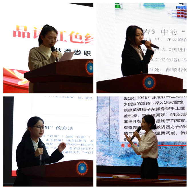 决赛现场,选手们精神饱满、意气风发,围绕《红岩》中革命先烈的坚贞不屈、《青春之歌》里青年学子的理想求索、《林海雪原》中剿匪英雄的英勇无畏等经典情节,结合自身成长经历与时代感悟,娓娓道来,让红色故事更具感染力与穿透力,同学们精彩的表现也让在场的评委老师们连连夸赞。