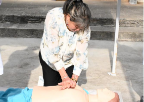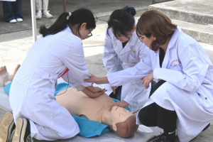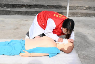 在活动现场,医学院师生党员为旅院师生有序开展健康检查,提供血压测量、氧饱和度测量等基础体检项目。现场教授心肺复苏术(CPR)基本急救技能,进行实操。发放健康手册、疾病预防小贴士等宣传材料。