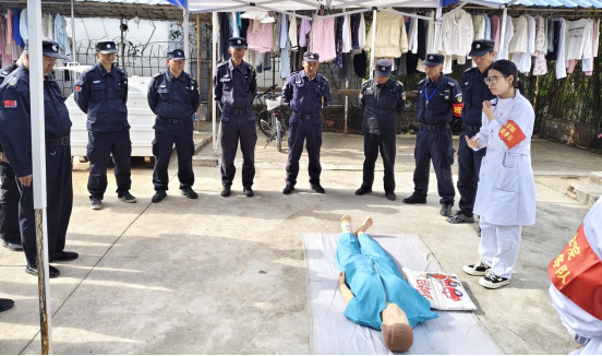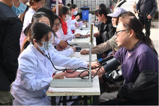 医学院为深入贯彻中央八项规定精神学习教育走实走深,组织开展“我为群众办实事”园区义诊和急救知识宣讲志愿服务活动,彰显“一站式”服务的核心理念,切实关心园区宿管阿姨、保安和后勤工作人员的身体健康,医学院党总支举办了本次园区义诊和急救知识宣讲活动。本次活动主要参与人员有:医学院师生党员、教研室老师。本次活动旨在通过义诊和宣讲行动,为学校工作人员提供健康检查,宣传健康教育,普及急救知识,引导大家树立“早预防、早发现、早治疗”的健康观念,增强师生党员们的社会责任感和服务意识。