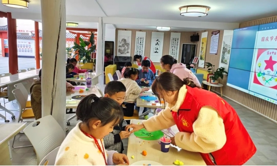 一直以来,文学院党总支学生二支部鼓励学生参与社会实践和志愿服务活动,培养社会责任感和奉献精神。在本次活动的最后环节,党员同志们充分发挥引领作用,帮助孩子们发挥自己的特长,亲手制作一幅幅手工粘土画。孩子们用稚嫩的小手,将对祖国母亲的热爱之情、对革命前辈们的致敬之心融入到作品中。这不仅是一次手工创作,更是一次深刻的社会实践,孩子们在实践中学会感恩,增强了社会责任感。本次活动不仅是党员同志们的成长,对于孩子们来说,也是一次思想上的提升。